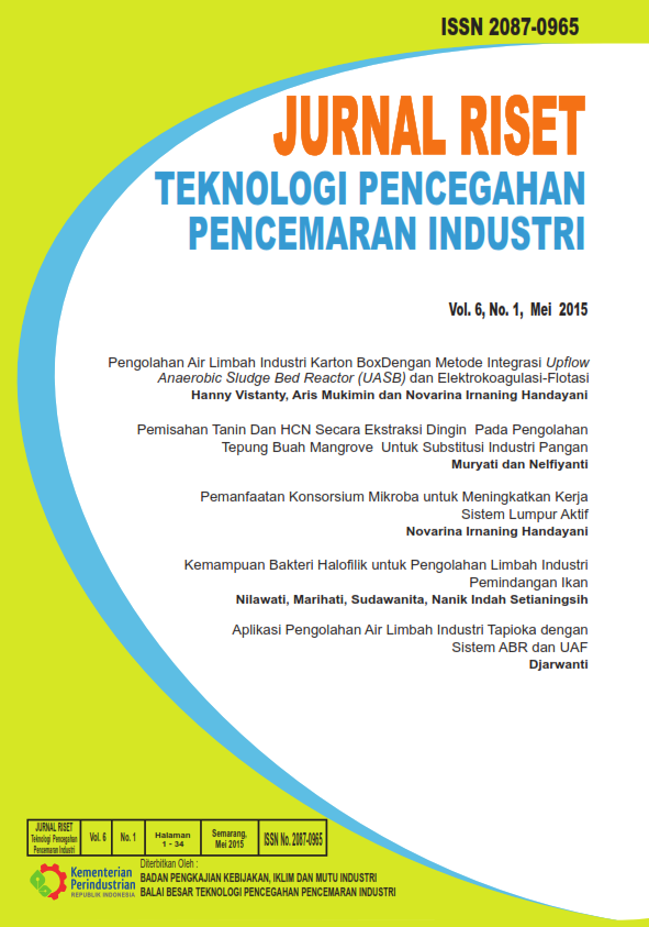 Printed edition of Jurnal Riset Teknologi Pencegahan Pencemaran Industri, available online since April 7th 2016, this is quick submitted issue, original archive can be seen here. -
